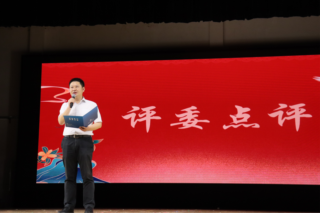接着,薛达对比赛进行点评。他强调本次大赛意义重大,参赛作品具有引领力、感染力和创新力,为传承红色文化搭建了有效平台。参赛者通过精彩诵演,生动再现革命先辈故事,将其与校史、中国商道有机结合,让红色文化在新时代焕发光芒。