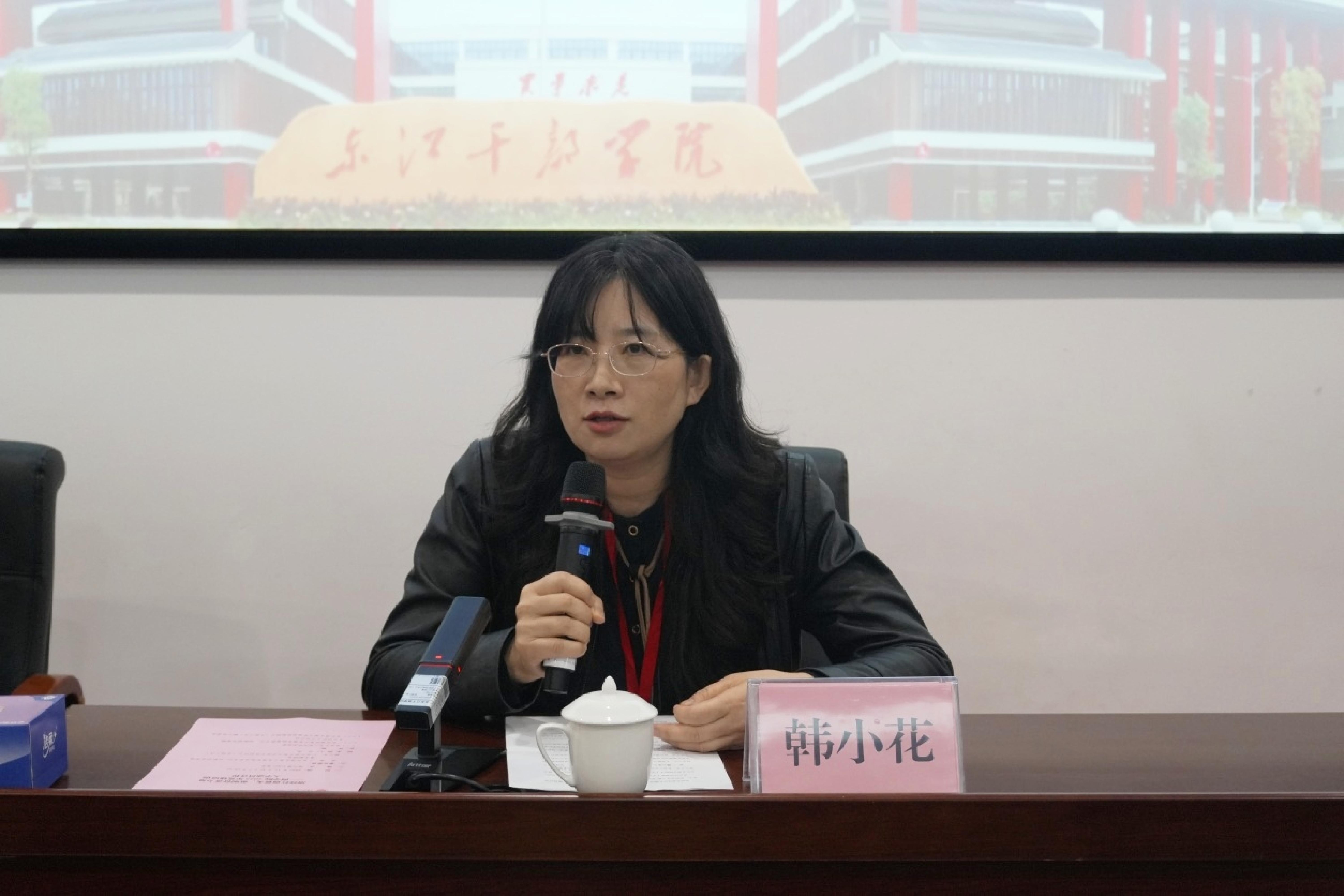 学院副院长(主持工作)韩小花发言,号召学员提高思想站位、强化使命担当,聚焦培训主题深化学思践悟,锤炼党性修养、提升干事本领,严守纪律规矩、坚持学以致用,推动学习成果转化为工作实效。