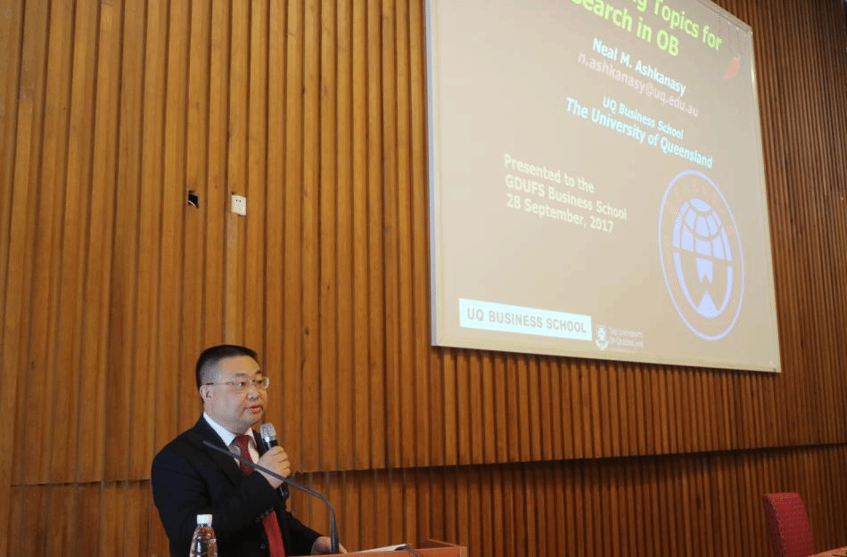 9月28日下午,澳大利亚昆士兰大学商学院Neal教授在南校区学术交流中心第一会议室分享了“Hot and Emerging Topics for Research in OB ”,商学院部分老师、研究生和本科生参加了本次学术讲座,讲座由商学院副院长袁登华教授主持。