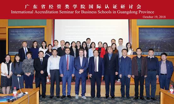 2018年10月19日下午,广东省经管类学院国际认证研讨会在我校国际会议厅顺利召开。研讨会由英国工商管理协会(Association of MBAs, 简称AMBA)主办,广东外语外贸大学商学院承办,中山大学、华南理工大学、暨南大学、华南师范大学、深圳大学、汕头大学、广东工业大学、广东财经大学、广州大学、广州商学院等十所院校共计三十余名代表参加,会议由AMBA中国区负责人、浙江大学管理学院资深文科教授王重鸣主持。