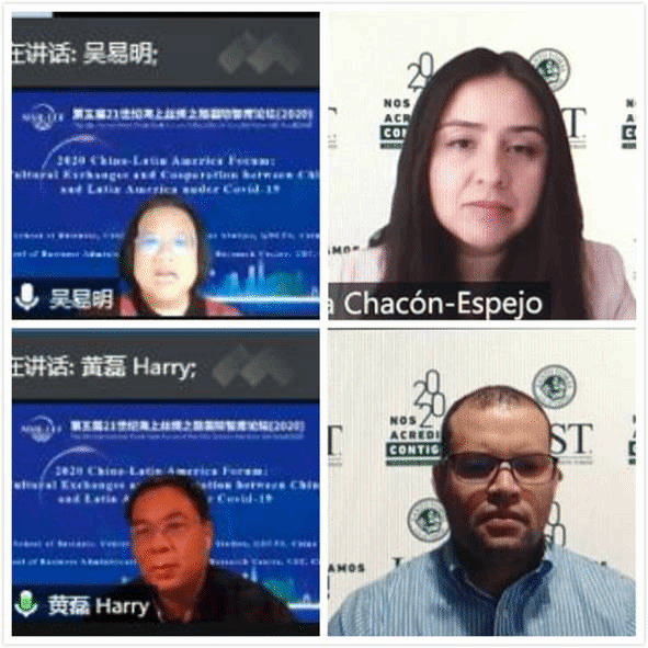 2020年12月12日,由广东外语外贸大学商学院、拉丁美洲研究中心,智利圣托马斯大学商学院、中国-智利研究中心联合举办的2020年中拉论坛“疫情背景下中拉人文交流与合作发展”暨第五届21世纪海上丝绸之路国际智库论坛(2020)平行论坛线上召开。来自广东外语外贸大学和智利圣托马斯大学商学院50余名专家学者和师生代表齐聚云端,围绕疫情下中国和拉美地区的热点问题展开深入探讨。论坛由广东外语外贸大学拉丁美洲研究中心副主任李永宁教授主持。