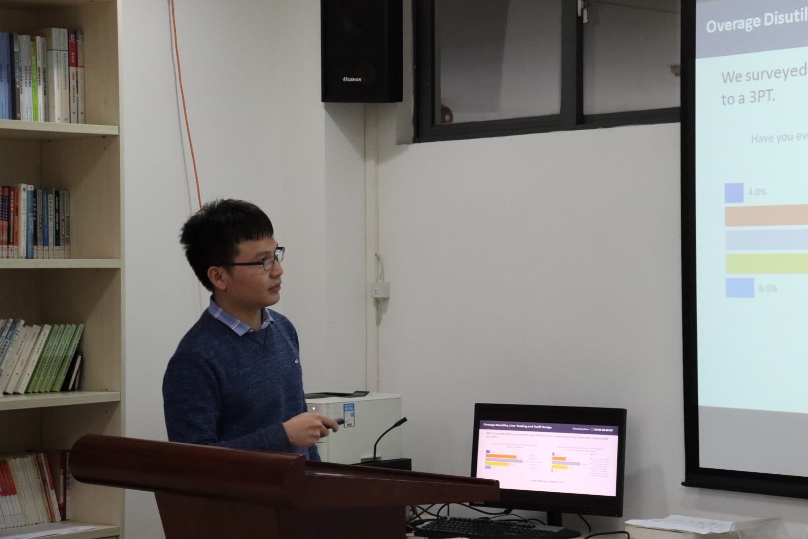 紧接着,黄伟祥老师为同学们分享题为《Overage Disutility, User Trading and Tariff Design》的研究。电信通讯行业正面临一个高度异质性的市场:特定套餐的用户在数据使用方面表现出非常多样化的消费模式,其中超过60%的低端计划用户使用50%甚至更少的限额;消费者在消费价格区间的选择上同样表现出巨大的异质性(低至2美元,高至70美元)。因此电信行业的定价方案远无法满足不同类别消费群体的需求。为此,部分电信企业为用户推出数据交易计划,允许用户交易自身的数据额度。