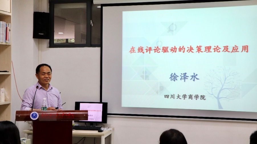 为进一步营造浓厚的学术研究氛围,搭建高水平的学术交流平台,4月18日下午,欧洲科学院院士、欧洲科学与艺术院院士、国际系统与控制科学院院士、四川大学商学院教授徐泽水受邀为我院师生开展主题为《在线评论驱动的决策理论与方法》的学术讲座。我院副院长韩小花出席并主持本次讲座。