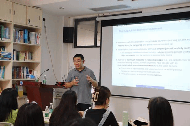 2023年5月25日下午,国家级海外高层次人才引进青年特聘专家、南方科技大学商学院研究员王宇受邀为我院师生开展主题为“九元航空公司‘安心飞’套票:运营管理在航空出行产品中的创新应用”的分享。我院副院长韩小花出席并主持本次活动。