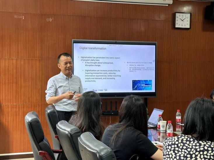 林教授首先探讨了数字化对日常生活的广泛影响。他指出,数字化通过降低交易成本、减少信息不对称、更好地匹配供需、提高生产率,从而带来了深远的变革。接着,林教授提出了几个研究问题。他探讨了人工智能(AI)对创业生态系统的影响,重点关注金融支持、教育水平、政府科技投入和政府治理绩效在其中的调节作用。其次,他分析了贸易紧张局势与AI及数字化转型的关系,特别是关税增加对供应链效率和销售业绩的影响,以及需求不确定性、资产专用性和客户集中度的调节作用。最后,他研究了消费者对AI进步的反应,特别是顾客面对服务机器人时的感受,探讨了机器人拟人化中的类人思维,并解决了消费者感知与服务机器人之间的复杂相互作用。