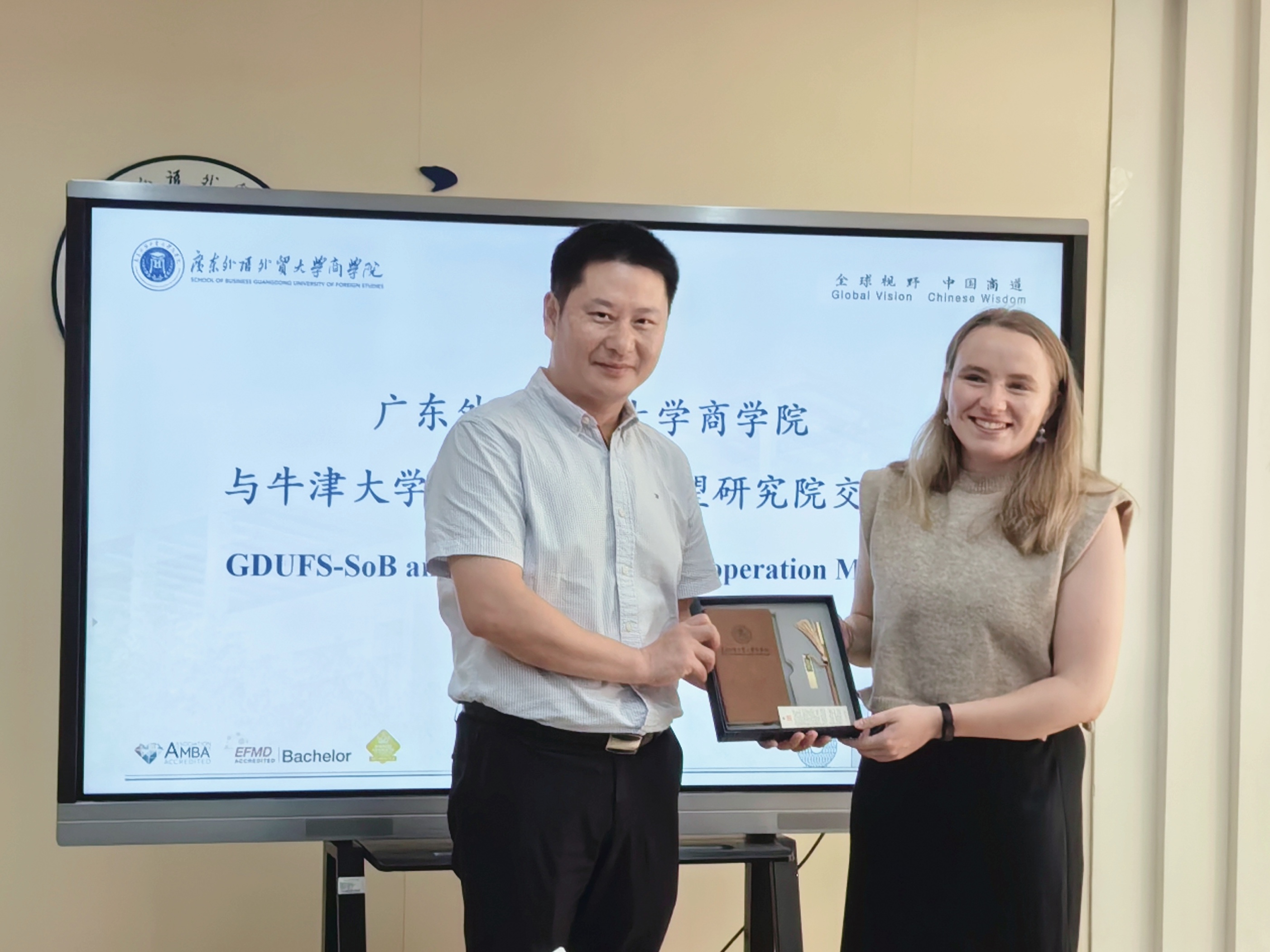 9月15日下午,牛津全球发展与展望研究院(OPGDI)外事联络官、牛津展望计划中国首席代表陆昱晨博士,学术推广负责人Ms Evie Brown,项目主任Ms Viola Liu来我院交流合作。广外商学院党委书记肖锋、副院长丁浩、国际事务办公室主任刘淑敏、主管王莹和焦月参加本次活动。会议由丁浩主持。