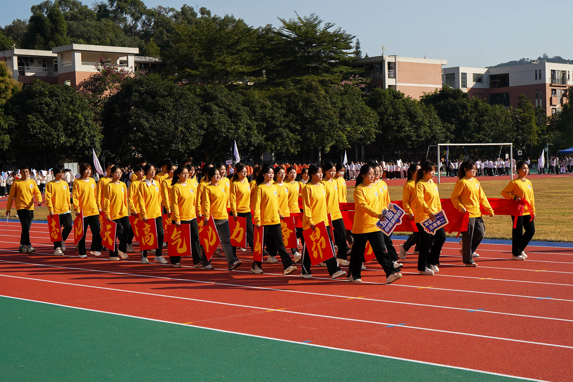 在开幕式中,各学院的学生代表们带来体育舞蹈表演以及体育健身课表演《阳光健身瑜伽》、团体操武术剑术表演和精彩绝伦的醒狮表演。他们充满青春活力,尽情演绎着青春风采。商学院方阵高举“志比天高,气比山昂,商院学子,力争更强”的标志牌,以饱满的精神状态展现出顽强拼搏、超越自我的决心。教职工代表组成的教工方阵也在现场为体育健儿们加油打气,开启了本届校运会的拼搏之旅。