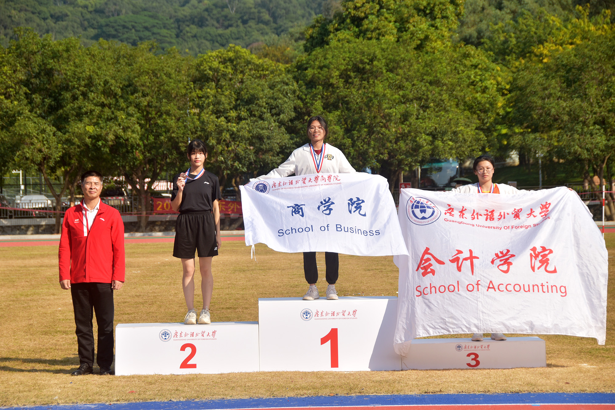 11月24日至25日,2023年广东外语外贸大学运动会在白云山校区综合体育场隆重举行。经过激烈的角逐,商学院斩获9枚金牌、4枚银牌、6枚铜牌,以248.3分荣获团体总分第一名和体育道德风尚奖!运动健儿奔赴青春战场,在校运会的舞台上展现飒爽英姿。
