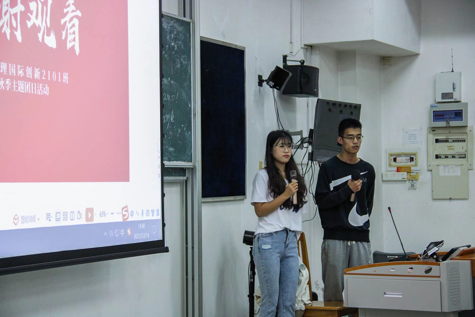2023年12月14日下午,商学院2023-2024学年第一学期主题团日活动展示报告会于大学城校区教学楼F215顺利举行。校团委专职团干李新璐,商学院团委书记张哲、2023级辅导员秦雨,商学院团委副书记黄冰、学生会执行主席刘笑君,展示团支部代表和各年级学生参加会议。