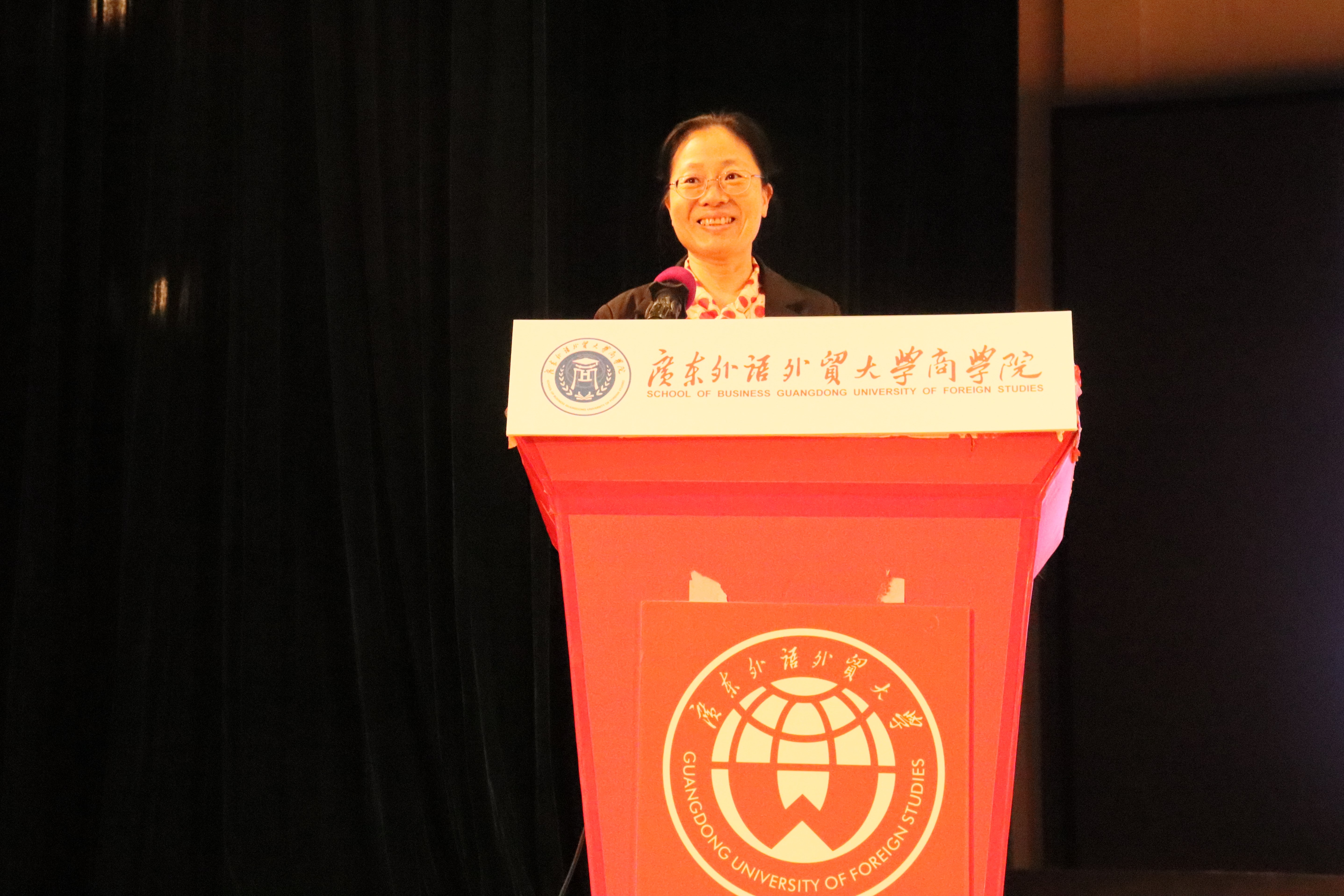 随后,商学院优秀学生代表杨凌、胡杏怡同学分别分享了在广外的学习生活与收获所得。学生热烈鼓掌,表示钦佩和向往。最后,肖喜明和沈长霞耐心为学生答疑解惑,学生积极踊跃发言,现场气氛高涨。