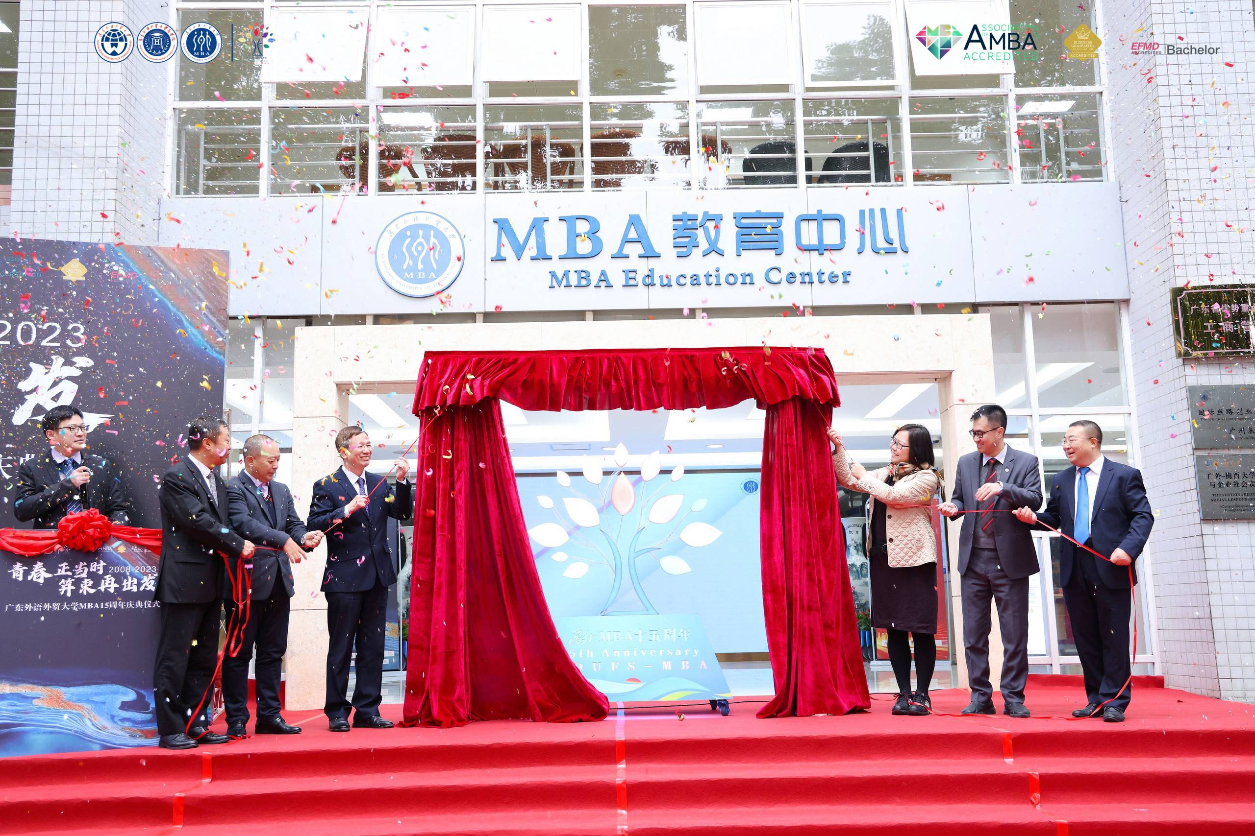 在庆典仪式上,领导、嘉宾和校友们一齐为广外MBA 15周年纪念LOGO揭幕并亮灯,并为广外MBA品牌IP形象“思喵”揭幕并命名。由MBA2020级校友杨凯川设计的纪念LOGO刻画出MBA十五年来如大树苍翠挺拔,像哨兵一样守护着每一个海内外学子。由大学拥有专利、2023级学生庄泽命名的广外MBA品牌IP形象“思喵”,是一只热爱思考的小猫,充满着活力与激情,“思喵”对应英文SMILE的音韵,寓意广外MBA学子以SMILE价值观为学习准则和价值导向,以“全球视野、中国商道”为理念,为将中心的建设和壮大努力奋斗、共同成长!