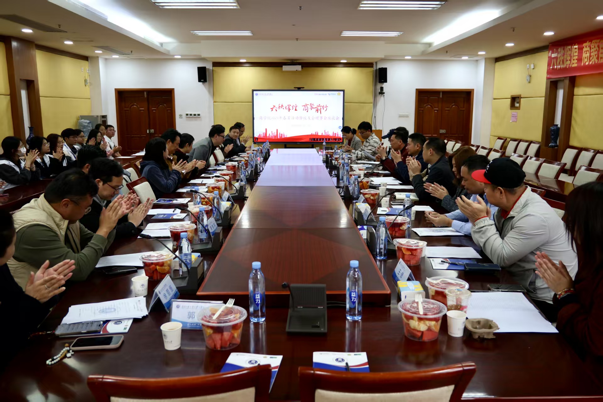 为庆祝广东外语外贸大学成立六十周年,进一步增进校友与母校的交流与联系,凝聚校友力量,推动学院高质量发展,2025年3月29日,商学院在大学城校区第一会议室举行“六秩辉煌,商聚前行”2025年校友春茗暨校友会理事会会议。商学院党委书记肖锋、副院长(主持工作)袁登华、原院长朱文忠、党委副书记沈长霞、创新创业学院副院长刘方龙、商学院校友会执行会长林明校友、商学院第三届校友会理事会成员、校友代表及师生代表出席活动。