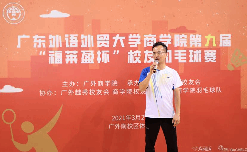 3月27日,商学院第九届“福莱盈杯”校友羽毛球赛在南校区体育馆举行。本次比赛由商学院主办,商学院校友会承办,广外越秀校友会、商学院校友服务中心和羽毛球队协办。校友事务与合作发展处副处长毕建永,商学院党委书记魏传文、党委副书记沈长霞,广州市福莱盈有限公司董事长、商学院校友会执行会长林明等出席活动。