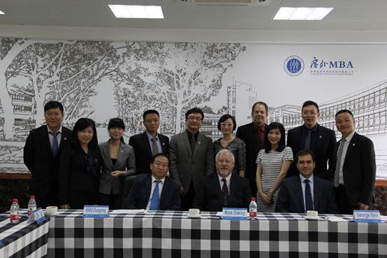 上午,预认证情况汇报工作及领导座谈会在MBA402会议室召开。首先,何传添致欢迎辞,他指出AMBA认证是我校强化MBA教育国际化特色、提升国内外品牌知名度的一项重要举措,自2012年启动此项工作以来,学校完成了学科调整,商学院结构整合、领导班子建设,MBA师资队伍建设,MBA课程方案修改,图书馆外文资源,实验室设施完善等一系列的持续改进工作。随后,商学院副院长兼MBA中心执行主任朱文忠代表商学院及MBA教育中心做全英文预认证报告,介绍了大学、学院及MBA项目的发展历程、特色与优势,重点汇报了MBA项目的战略实施、面临的挑战及未来的持续改进计划。随后,AMBA认证专家和商学院领导进行座谈交流。Mark Haydn Oakley、王重鸣和George Iliev对学院及项目的管理、架构、师资力量、资源整合、学科发展、课程设置、国际接轨、自评报告、教学模式等提出了疑问,我校商学院领导对此一一作出详细具体的解答,并提供充分的文字资料与表格加以说明。