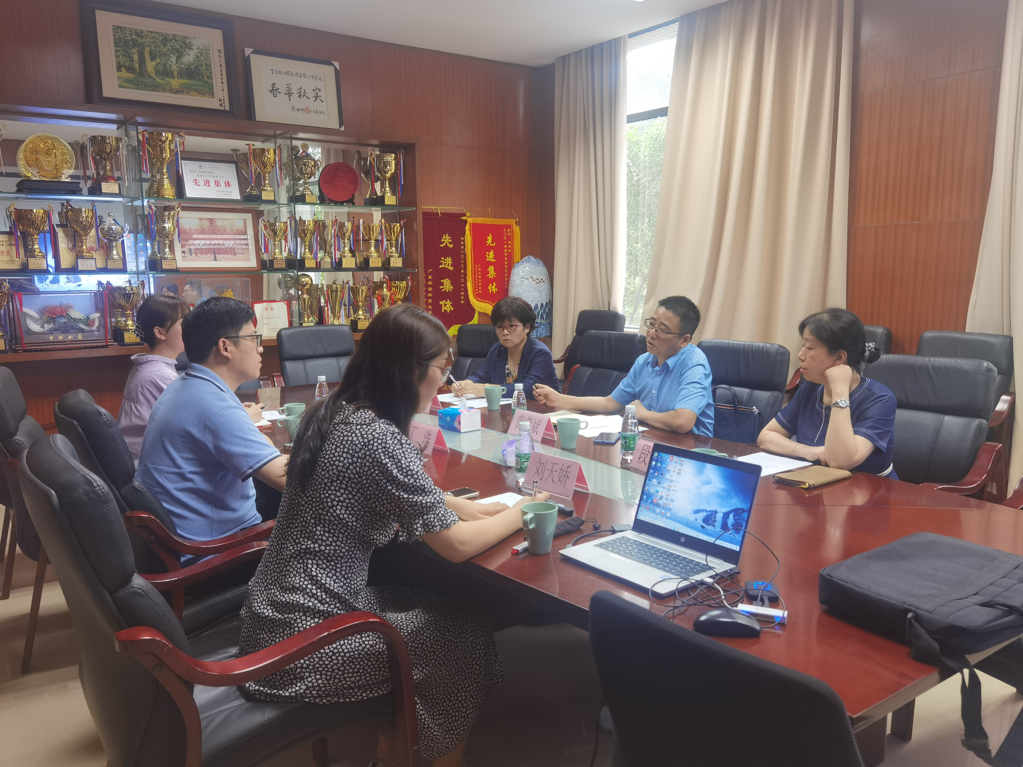 黄荣斌介绍了广东工业大学经贸学院的学位项目、专业设置、师资学生等情况。他表示,作为工科专业类院校,广工和广外的经管类学院有着相似之处,希望学习借鉴广外商学院的认证经验,通过特色的凝练不断促进学院发展,尤其是在EPAS认证的推动下稳步提升人才培养质量。最后,双方就学院特色定位、认证战略部署、认证团队建设等具体问题进行了交流探讨。