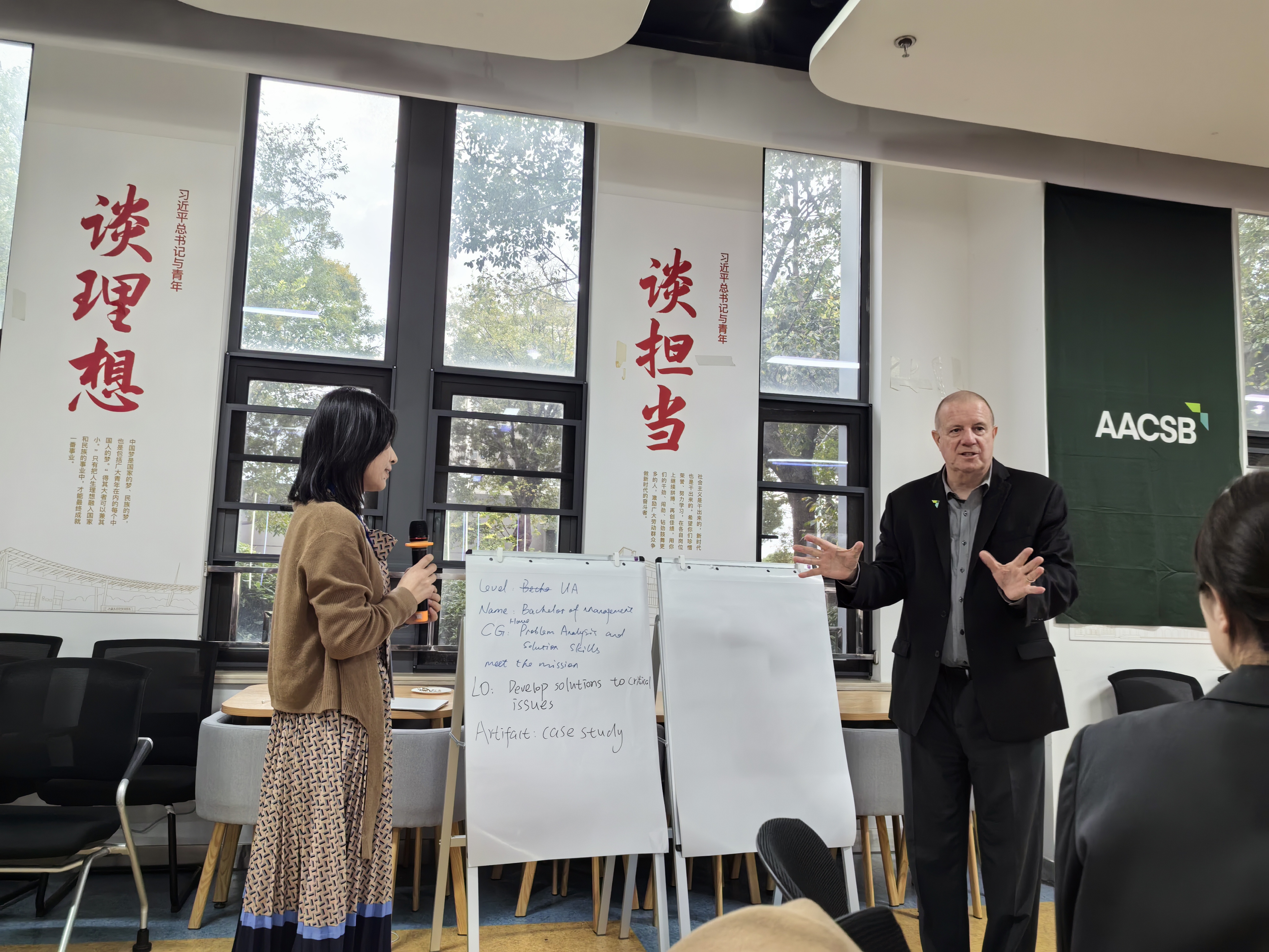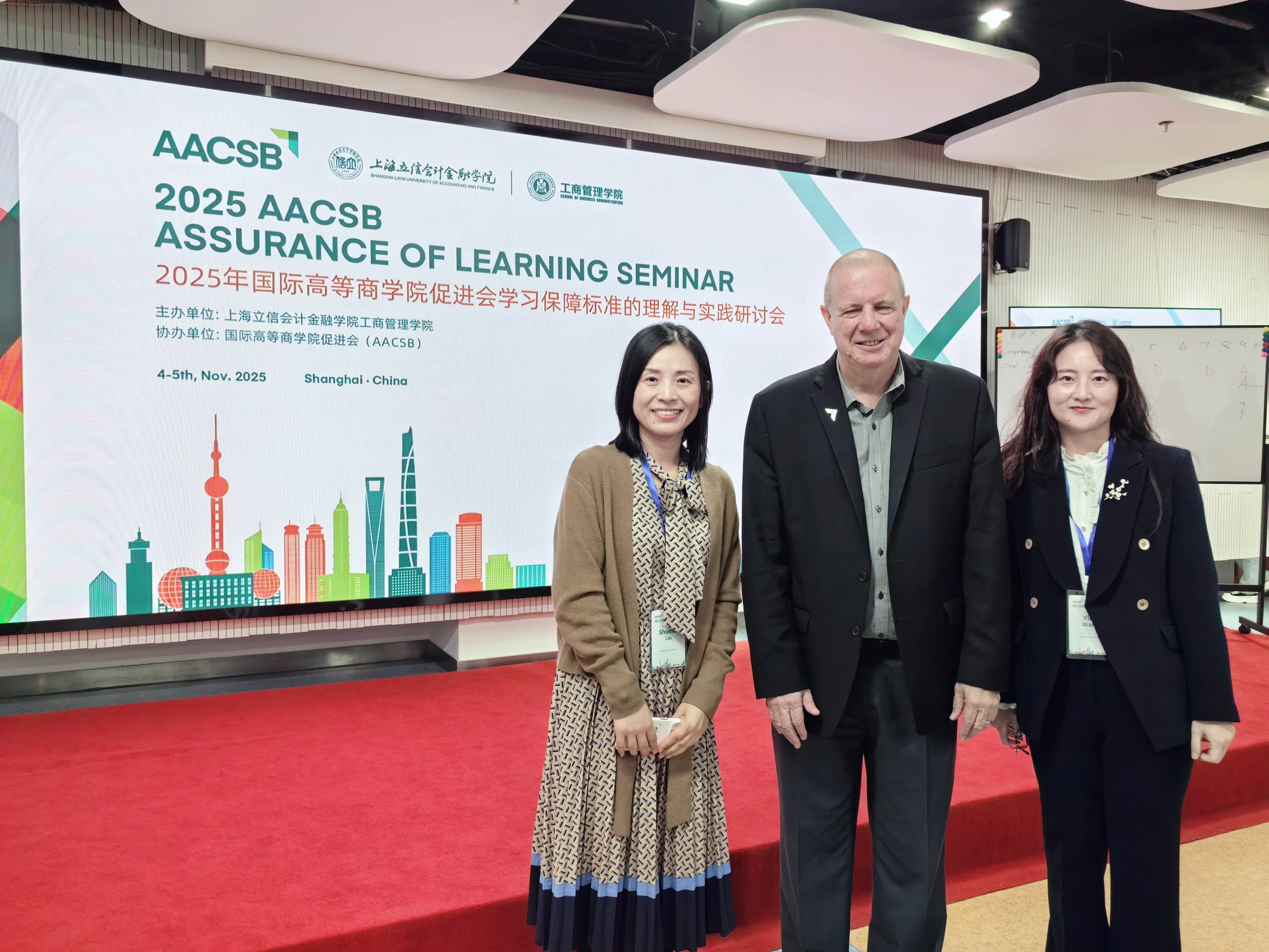 11月4日至5日,由 AACSB 主办、上海立信会计金融学院承办的 "保障学习质量(AoL)" 专题研讨会在上海召开。商学院国际事务办公室主任刘淑敏、认证主管王莹参会,与来自全国各高校的商科教育同仁齐聚一堂。会议通过专家专题讲授、典型案例深度解析、跨校小组研讨等多元形式,全景呈现 AoL 认证全流程实施路径,重点围绕能力目标精准设定、课程地图科学搭建、评估工具优化选择、数据收集分析与持续改进机制构建等核心环节展开深入交流。参会人员系统掌握了 AoL 认证实操方法,为学院完善教学质量保障体系、推进认证相关工作落地提供了有力支撑。