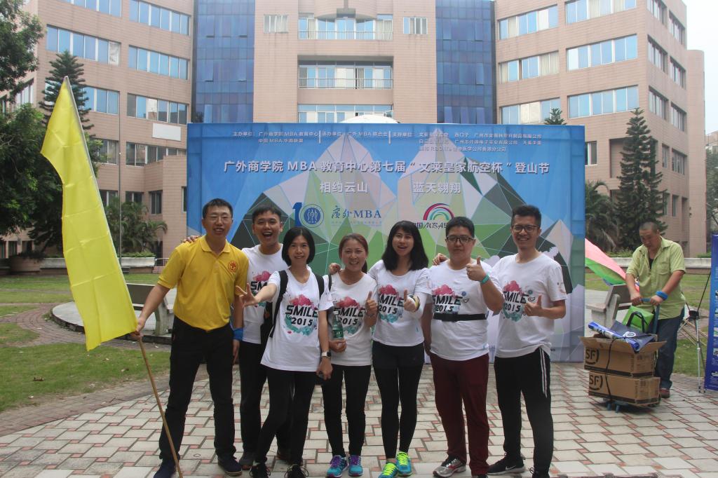 11月6日下午1时许,第七届广外商学院MBA登山节在北校区MBA中心大楼前拉开帷幕。参加此次活动的除了MBA在校师生和MBA历届校友,还邀请到了中国MBA华南联盟成员,广州各大MBA高校学生、华南采购沙龙成员等。出席此次活动的领导老师有商学院党委书记许志超,执行院长朱文忠,副院长袁登华,党委副书记罗海洋,MBA中心主任王刚,MBA办公室老师张曼玲,梁妍,孙跻珂,洪燕以及任课老师冯然。