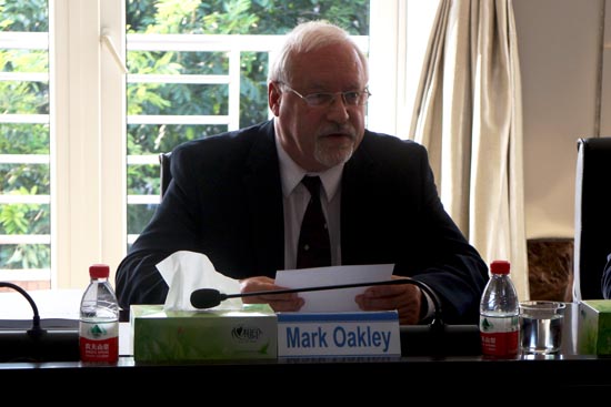 上午,预认证情况汇报工作及领导座谈会在MBA402会议室召开。首先,何传添致欢迎辞,他指出AMBA认证是我校强化MBA教育国际化特色、提升国内外品牌知名度的一项重要举措,自2012年启动此项工作以来,学校完成了学科调整,商学院结构整合、领导班子建设,MBA师资队伍建设,MBA课程方案修改,图书馆外文资源,实验室设施完善等一系列的持续改进工作。随后,商学院副院长兼MBA中心执行主任朱文忠代表商学院及MBA教育中心做全英文预认证报告,介绍了大学、学院及MBA项目的发展历程、特色与优势,重点汇报了MBA项目的战略实施、面临的挑战及未来的持续改进计划。随后,AMBA认证专家和商学院领导进行座谈交流。Mark Haydn Oakley、王重鸣和George Iliev对学院及项目的管理、架构、师资力量、资源整合、学科发展、课程设置、国际接轨、自评报告、教学模式等提出了疑问,我校商学院领导对此一一作出详细具体的解答,并提供充分的文字资料与表格加以说明。