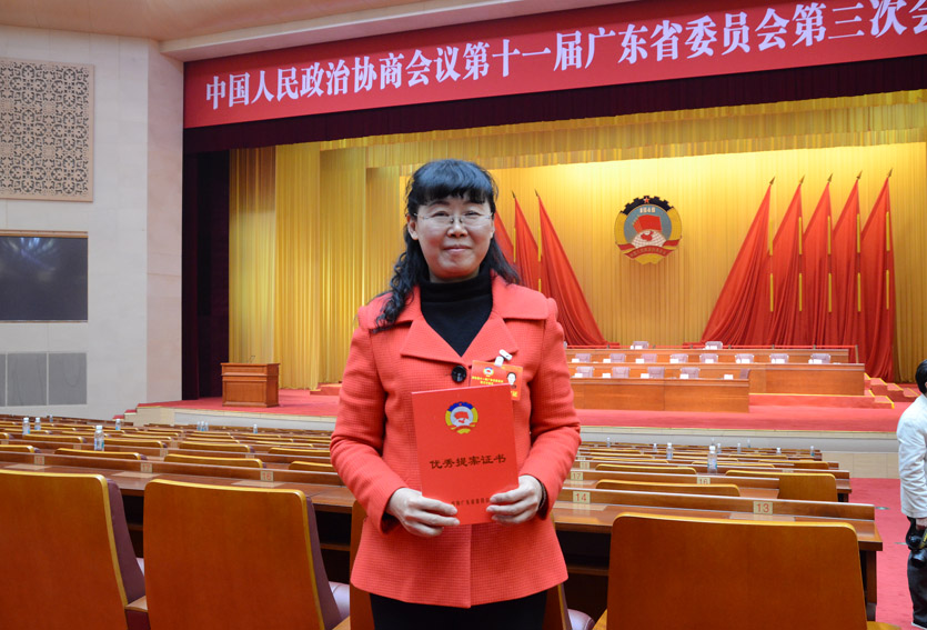 本网讯 2月7日上午,省政协第十一届三次会议在广州召开,大会表彰了一批获评2014年度优秀提案的单位和个人,我院王卫红委员受到表彰并上台领奖。