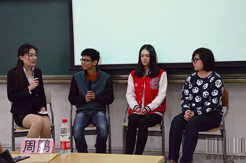 本网讯(文:陈彦彤 图:刘珩)3月12日下午3:00,商学院出国出境项目交流会在教学楼C308举行。出席本次交流会的嘉宾有广东外语外贸大学国际合作与交流处国际项目科科长周鹏、我院外事协调员周宁、办公室老师曹逸寒、教务办老师吴倩茜、团委书记李晟,学院11级参加交换生项目的物流管理专业学生李阳、薛亦婷、徐嘉雯。