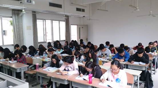 从本周开始,在学校的统一号召下,我院2015级各班如火如荼地开展早听早读工作。早上7:15,各班学生已经提前在指定教室就座。学院罗海洋书记、2015级新生辅导员杨柳和杨欣老师、2015级朋辈导师招晓杰等都来到指定的早听早读教室进行情况检查。各班朋辈导师和学习委员在早听早读前都做好了今日学习任务安排,以保证学生们一早来教室就能进入学习状态。整个教学楼都萦绕着琅琅的读书声,无论走进哪个教室,都能看到学生们发奋努力的身影。