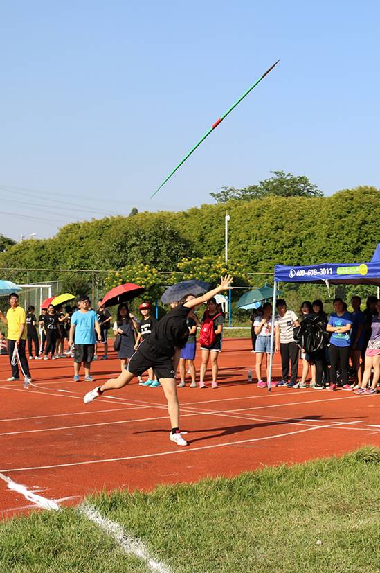 同学们较为陌生的标枪项目周围聚集了一大批前来观战的同学们。选手中最为引人注目的当属来自管理1402的潘俊利了,标枪从她手中投出并在空中划过一条漂亮的抛物线,娴熟的技巧和流畅的动作使她最终成功获得女子标枪冠军。