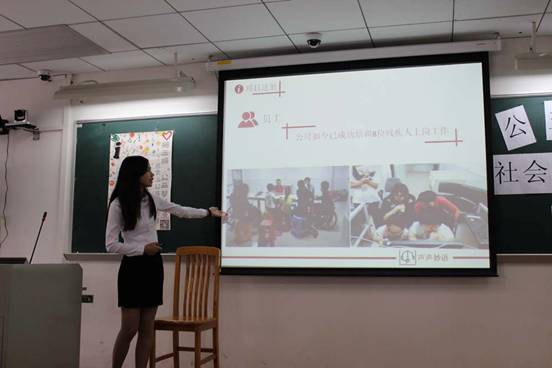 本场比赛由团队自我介绍、项目PPT展示、现场答辩三个环节组成。参加决赛的六支队伍分别是:关注传统文化,希望通过美食唤醒青少年传统文化意识的“舌尖上的传统”小组;关注残疾人就业,通过成立呼叫公司帮助残疾人士自立自强的”声声妙语“小组;聚焦成人自闭症患者的“星星战士”;关注农村妇女生殖健康的“巾帼英雄”;致力于回收年花年桔的“造梦者;以及提倡变废为宝,聚焦大学生废旧自行车处理问题的“骑天大圣”小组。