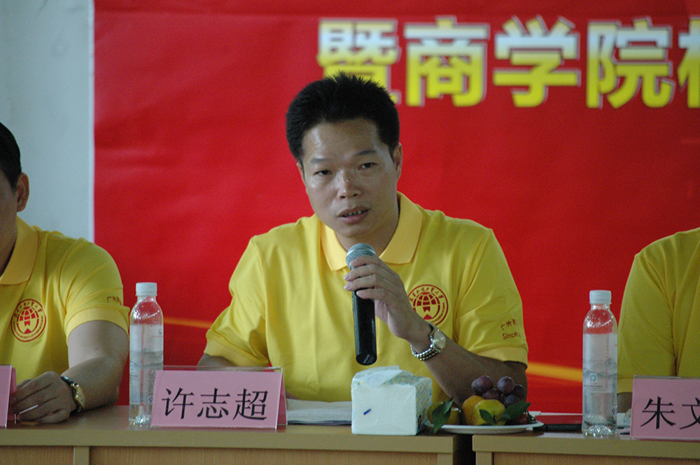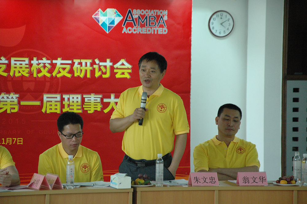 ,商学院建设与发展校友研讨会暨商学院校友会第一届理事大会在广东外语外贸大学商学院MBA教育中心401室隆重召开。会长朱文忠、执行会长许志超、商学院副院长袁登华、副院长梁洁、秘书长罗海洋以及各位名誉副会长、常务副会长、副会长、副秘书长、常务理事、理事等嘉宾出席了本次大会。许志超执行会长主持大会。