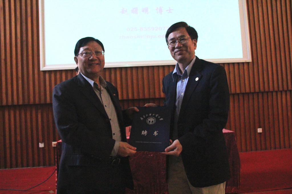 在讲座开始之前,何传添副校长为赵曙明教授颁发客座教授聘书。