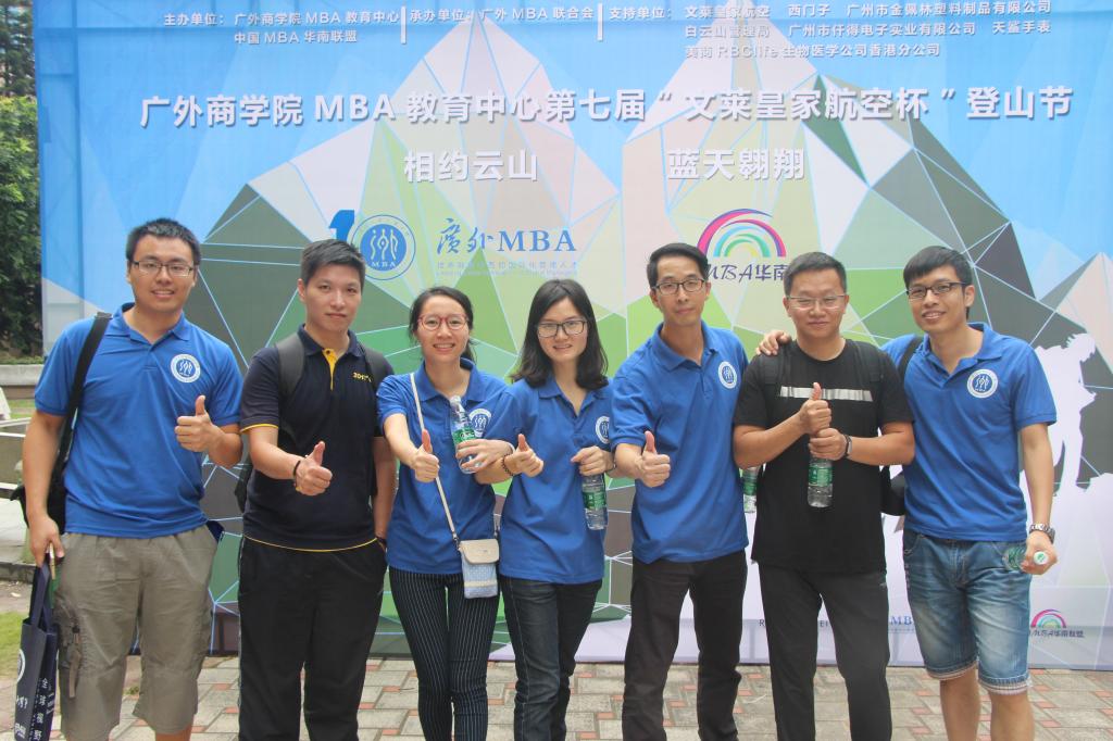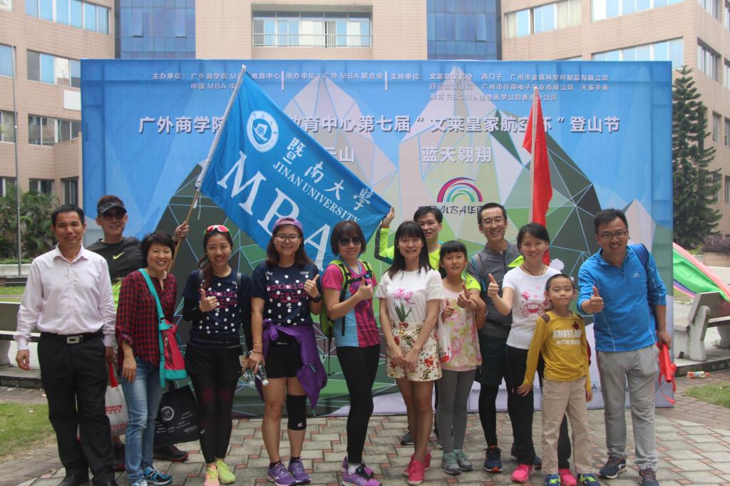 11月6日下午1时许,第七届广外商学院MBA登山节在北校区MBA中心大楼前拉开帷幕。参加此次活动的除了MBA在校师生和MBA历届校友,还邀请到了中国MBA华南联盟成员,广州各大MBA高校学生、华南采购沙龙成员等。出席此次活动的领导老师有商学院党委书记许志超,执行院长朱文忠,副院长袁登华,党委副书记罗海洋,MBA中心主任王刚,MBA办公室老师张曼玲,梁妍,孙跻珂,洪燕以及任课老师冯然。