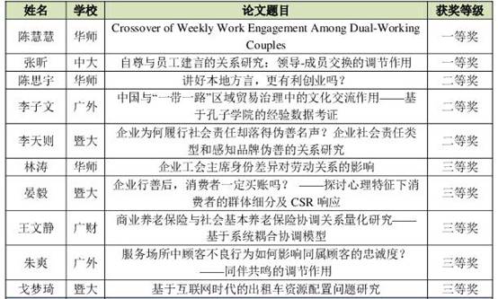 图3. 2016广东省商科研究生学术论坛获奖名单
