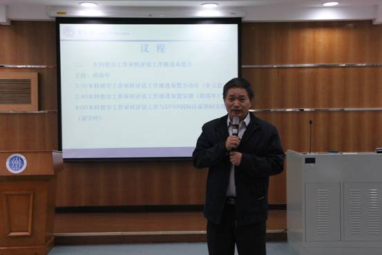 商学院召开了本科教学工作审核评估工作推进布置会。执行院长朱文忠首先传达了仲伟合校长的讲话精神,对本次本科教学评估审核工作提出了要求和建议,动员全体教职工以“主人翁”的身份,团结协作,共同促进商学院本科教学评估工作的顺利推进。