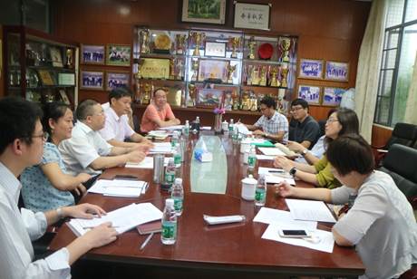 焦方太听取汇报 袁登华副院长汇报了案例开发、学术科研情况。梁洁副院长汇报了伊拉斯谟项目等国际交流合作情况。罗海洋副书记汇报了新生报到、阳光体育工程、青马工程运行情况等。