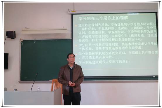 专题报告中,余教授首先提出,学分制是一种建立在选课制为基础上,学分计量制和学分绩点制为核心,综合了弹性学制、专业选择和选课、主辅修、学分互认、免修重修、学业预警和学业导师制等为基本内容的教学管理制度。学分制能够帮助学生自主选择专业、课程、教师和修业年限。同时,学分制是一种教育管理制度,其基本精神是承认学生的个体差异,基本背景是教育适应市场要求。学分制是体制机制改革的突破口和建立现代大学制度的基石。在此过程中,大学资源、管理者、教师和学生都要得到充分考虑。