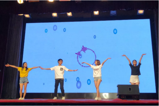 下一个登场的是商学院工管系的同学,他们精心准备了歌唱节目《我们的大学四年》,一首《你被写在我的歌里》带领观众进入奇妙的音乐世界,《遇见》则表达了缘分让彼此相遇的幸运和感动,而精心改编的《春去秋来》抒发了即将离开校园的不舍。歌曲串烧过后,商学院艺术团为我们带来了活力四射的舞蹈《halo halo》,动感的舞蹈引爆全场。紧接着是商学院物流系的《Good time》表演,他们载歌载舞,让现场洋溢着欢乐的气氛。