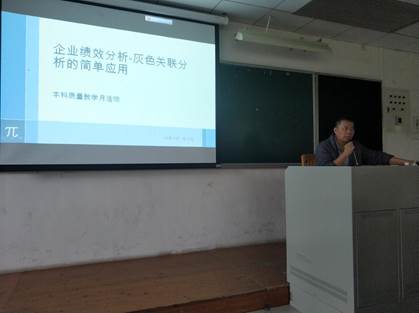 为了让同学们对此次讲座的流程有一定的了解,潘文超教授在讲座正式开始前,简单介绍了此次讲座主要内容,主要包括:灰色理论的背景、灰色关联分析原理、企业绩效案例研究。紧接着潘教授强调了灰色关联分析的应用领域非常广泛,尤其在企业绩效分析中,同时指出商学院很多毕业生选择使此技术方法进行论文的研究撰写,希望同学们可以认真学习应用此研究方法。