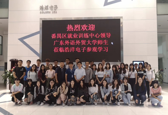 2018年11月15号, 在广东外语外贸大学商学院王刚副教授的带领下,番禺区就业训练中心的支持下,广外商务谈判1班、2班以及采购实务1班三个班级学生前往浩洋电子股份有限公司参观学习,了解民族品牌的全球化供应链战略。