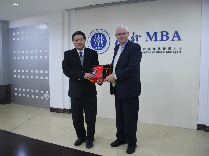 朱文忠首先表达了对Jérôme Bon教授的欢迎与感谢,然后从商学院的发展历史、组织架构、工商管理本科项目的师资力量、科学研究、国际交流和校企合作等方面进行总体介绍。围绕学院的SMILE价值观、“成为国际化特色鲜明的高水平商学院”愿景,以及“培养国际化高端商科人才”的使命,朱文忠着重介绍了工商管理本科项目的国际化程度,从国际合作伙伴、教师获得海外博士学位的比例、课程设置的国际化、创新班设置、国际交换生和留学生数量、国际会议举办、与海外高校共建科研中心、学生参加国际比赛、欧盟伊拉斯谟+项目等九大方面进行了详细解读。此外针对EPAS认证提出的“持续改进”要求,朱文忠从学院战略、学科发展、课程设置、教师、学生和行政管理六个方面进行了回应。最后展示了我院推进EPAS认证工作的进度表,希望可以在Jérôme Bon教授的专业指导下早日通过EPAS国际认证。