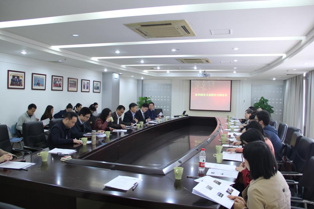 商学院丁浩副院长代表商学院向与会人士介绍了全英教学部的发展历程和国际创新班的发展情况。在全英教学部黄磊主任的主持下,与会师生就全英教学部建设及创新班发展的工作思路与重点踊跃发言,现场气氛十分热烈。