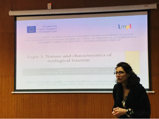 由欧盟Erasmus+资助的LMPT (Licence Master Professionnel Tourism)可持续旅游项目致力于在中国、吉尔吉斯斯坦和越南三个发展中国家发展可持续旅游。广东外语外贸大学作为中国牵头大学于2017年1月正式参与LMPT项目,在欧盟合作伙伴的支持下,建设、发展中国的可持续管理学科。