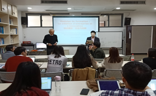 另外,Michel BROSSE教授开展了有关创业创新的讲座,由商学院创新创业领域的专家黄磊副教授主持。讲座中,Michel BROSSE与现场学生积极互动。