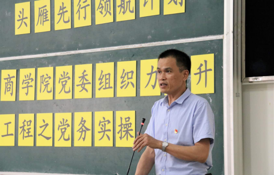 商学院党委书记魏传文讲话强调要认真贯彻落实习近平总书记提出的“把全面从严治党落实到每个支部、每名党员”要求,加强党支部标准化、规范化建设,切实提升党支部组织力。据悉商学院党委近日下发关于进一步贯彻落实《中国共产党支部工作条例(试行)》的通知,要求各支部按照《条例》要求,巩固完善传统领域党支部建设,拓展建设新兴领域党支部建设。