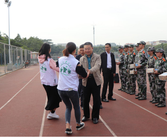 最后,沈长霞对教官们辛勤的付出表示诚挚的感谢,鼓励新生继续保持昂扬斗志。学院领导为教官和参训学生送上慰问品。