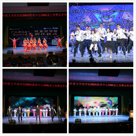 晚会在红红火火的《喜庆欢歌》中拉开帷幕,商学院院长朱文忠教授为本次晚会致辞。他提到,广外MBA始终践行“社会责任(Social Responsibility)、尊重包容(Mutual Respect)、正直诚信(Integrity)、知行合一(Learning by Doing)、创业精神(Entrepreneurship)”的“SMILE”价值观,在学校领导及社会各界的大力支持下,通过了AMBA国际认证和再认证,而这几年成就的取得,离不开每位领导、老师和同学的不懈努力。双导师制的施行必将为广外MBA教育注入更多活力,广外MBA定会在各界人士的支持下变得更强大、更优秀。