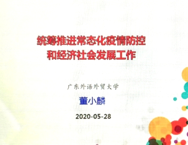 5月28日下午,校思政宣讲团专家董小麟教授为商学院师生作“统筹推进常态化疫情防控和经济社会发展工作”在线专题思政宣讲。会议由院党委书记魏传文主持。