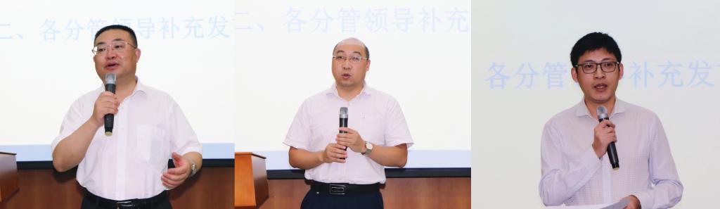 副院长袁登华、曾楚宏、丁浩、徐艺青,党委副书记沈长霞分别就公共服务、学科建设与科研管理、人才培养与教学管理、MBA招生与教学及国际交流与合作、学生工作等做补充发言。
