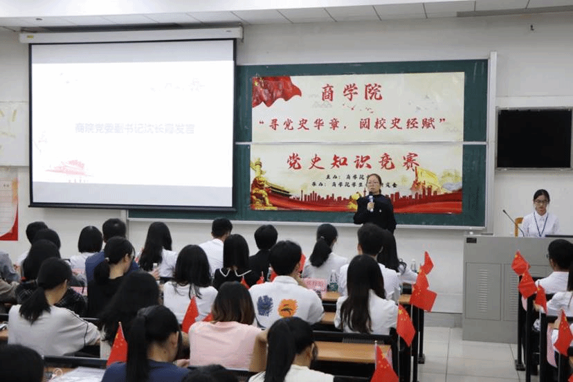 2020年是中国共产党99周年华诞,同时是广外建校五十五周年。为增进商院学子对党史和校史的了解,商学院“寻党史华章,阅校史经赋”党史知识竞赛于11月26日晚七点在教学楼F315进行。商学院党委副书记沈长霞、商学院学生党建研究会指导老师向媛薇、学工办王朕、秦雨、张哲等老师出席活动。