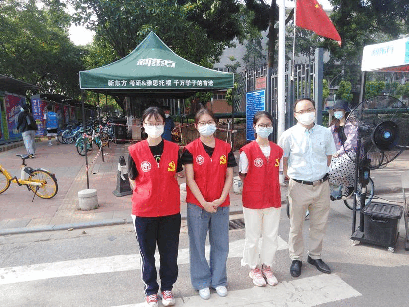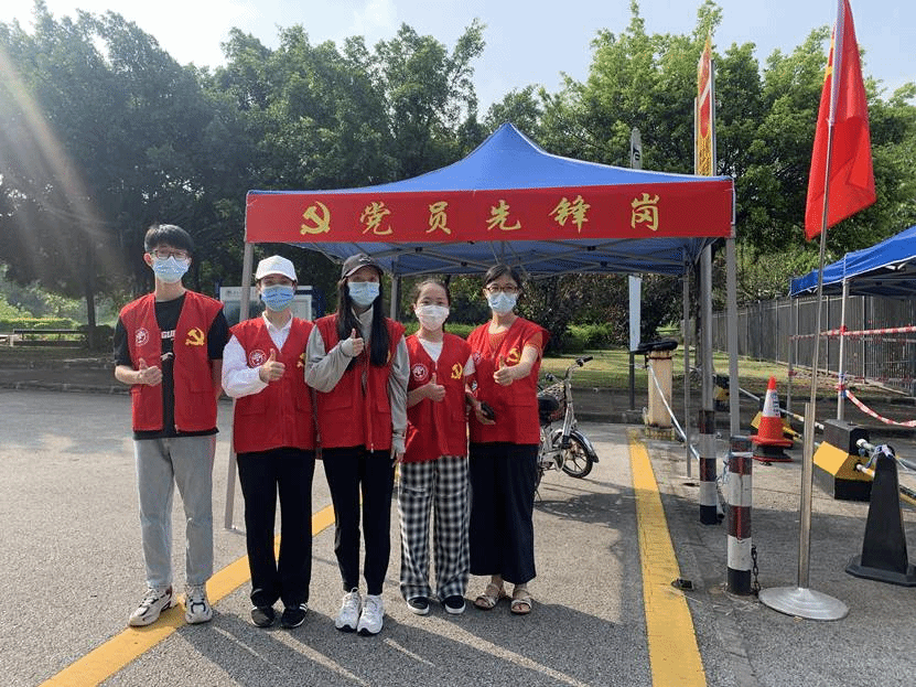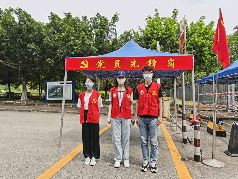 有一分热发一分光,商学院党委积极响应学校号召,充分发挥党支部战斗堡垒作用,让“党旗在基层一线高高飘扬”,团结一心打赢校园疫情防控战。6月8日,商学院师生党员志愿者们穿上红马甲,在南校区教学楼、生活区门岗上下课高峰期,不畏酷暑、坚守岗位,积极投入疫情防控,协同学校安保人员,一起完成入校人员体温检测、核验身份、查看健康码、提醒口罩佩戴等工作。