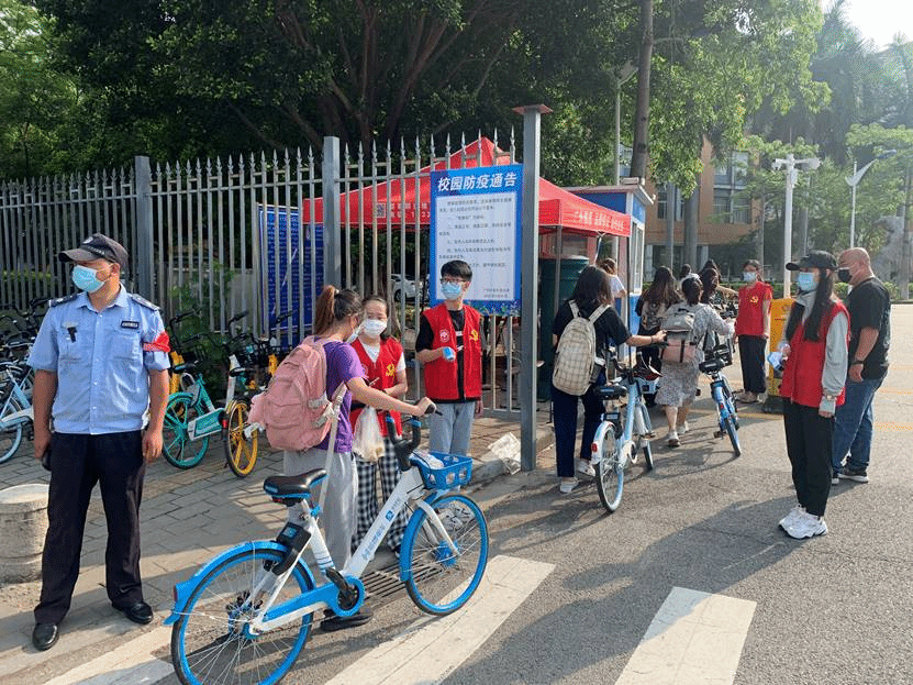 当天,“红马甲”在校门口对每一位经过的老师和同学进行“一测三看一提醒”,拦下每一辆经过的自行车提醒注意安全、缓慢骑行进校园,以点滴行动汇聚“抗疫”力量,充分展示了我院师生党员科学有序投身校园疫情防控工作,在关键时刻贡献志愿服务力量的精神面貌。