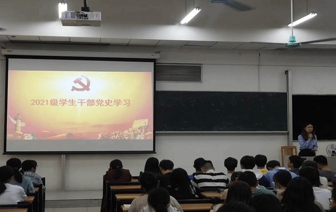 为推动党史学习教育走深走实,引导学生树立红色信仰和远大理想,增强学生的纪律规范和安全防范意识,提高适应大学生活的能力,10月25日,商学院2021级党史宣讲暨班委宿舍长培训大会在南校区教学楼F215顺利举行。辅导员罗毅颖、黄冠富参加会议并做主题教育。
